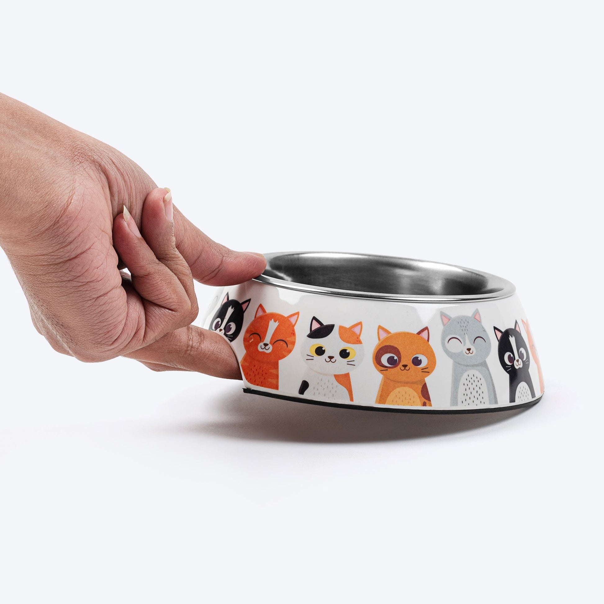 HUFT Kitty Family Printed Melamine Bowl With Steel Inserts For Cat - Multicolor