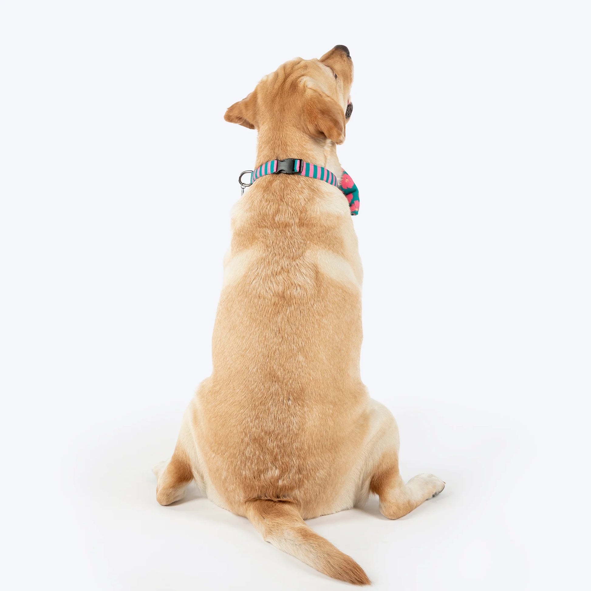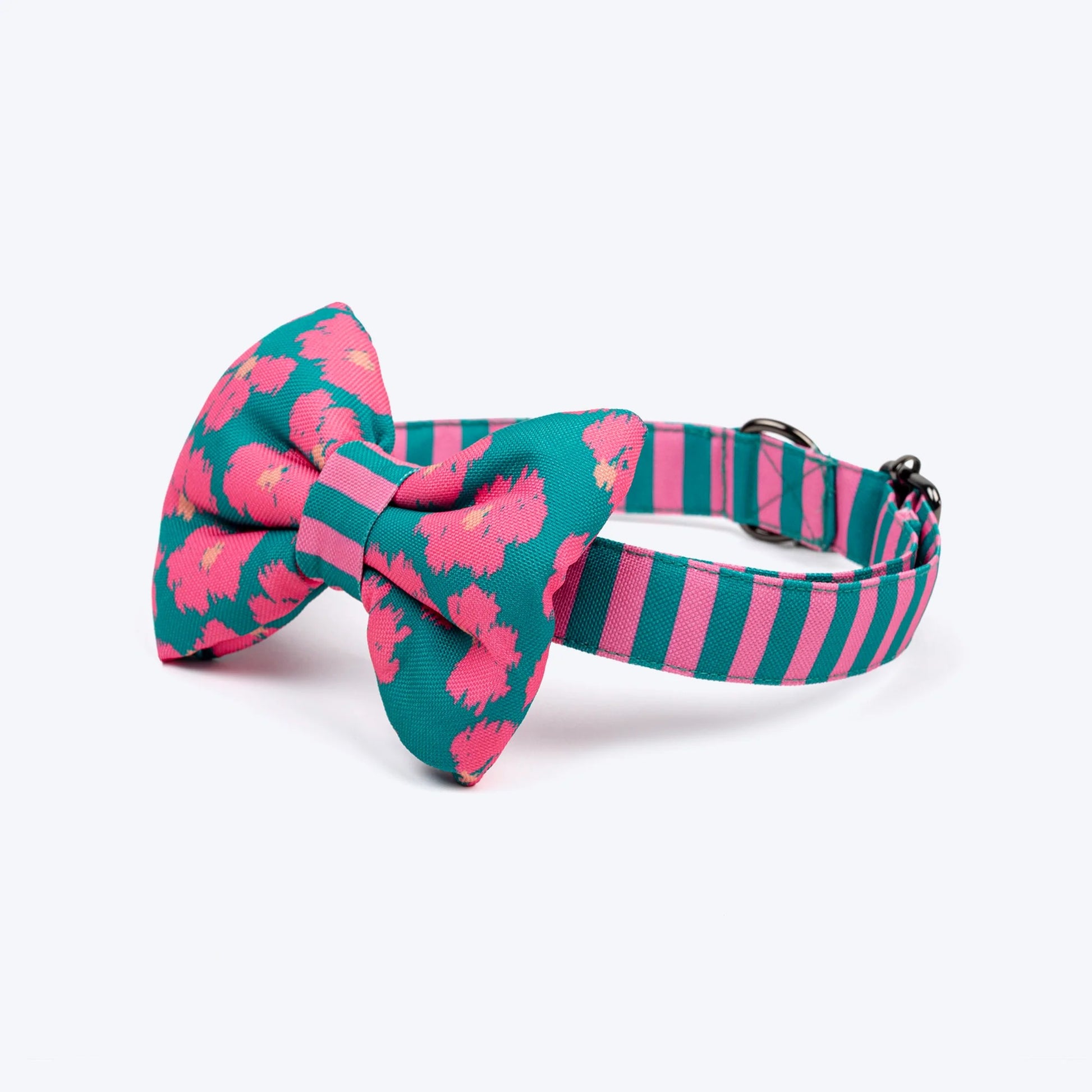 HUFT Pawsome Blossom Bow Tie With Collar For Dog - Green & Pink